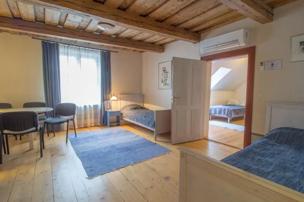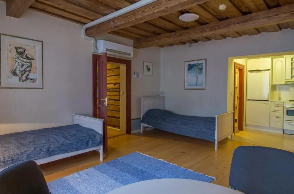 Nice and cozy accommodation, historic log building. Spacious rooms and good beds. Dogs welcome. You could park your car in the courtyard for free. After respa closes easily with the key code. Lots of nice restaurants, parks, etc. attractions within walking distance. Easy to arrive, short distance to the exhibition hall. We will definitely come a third time